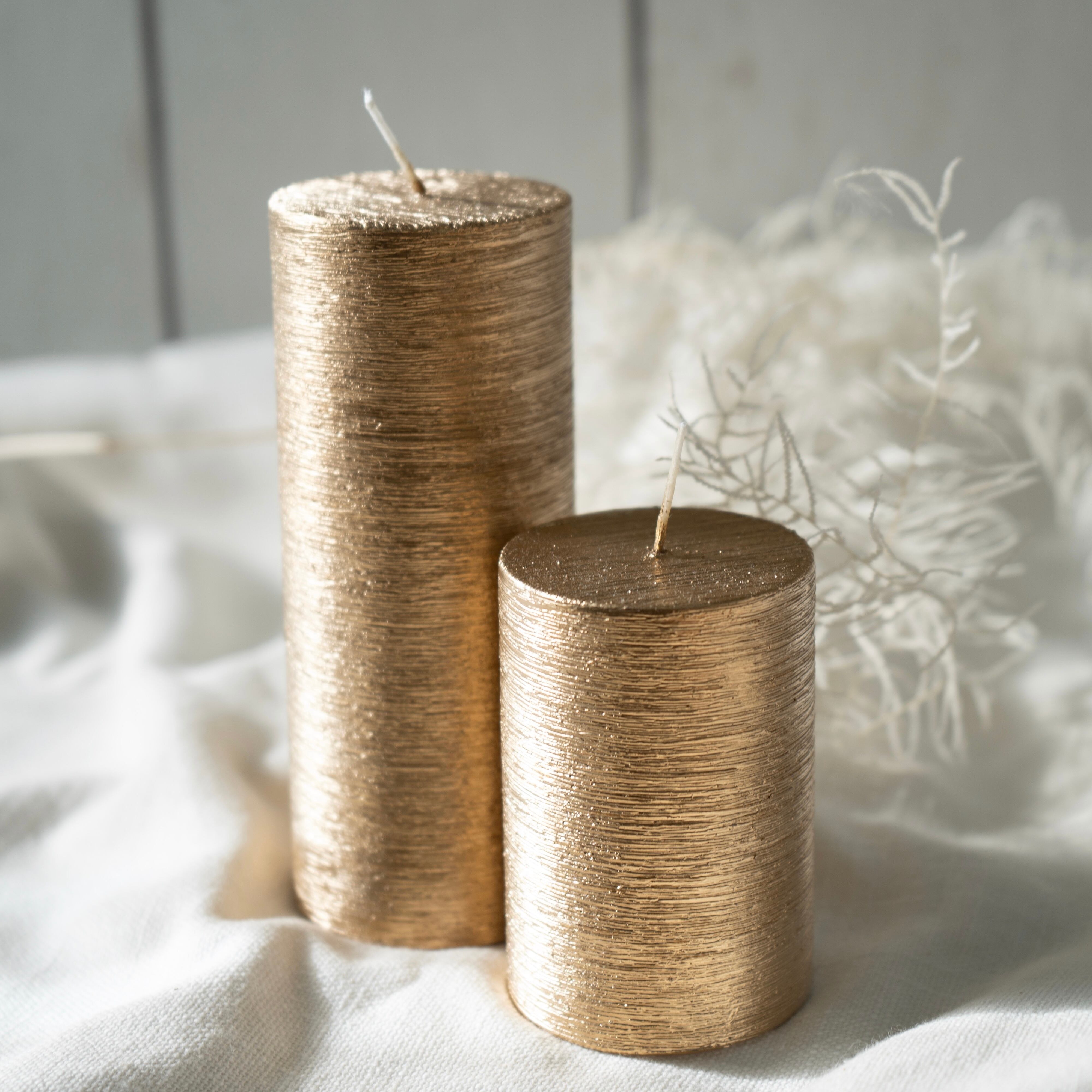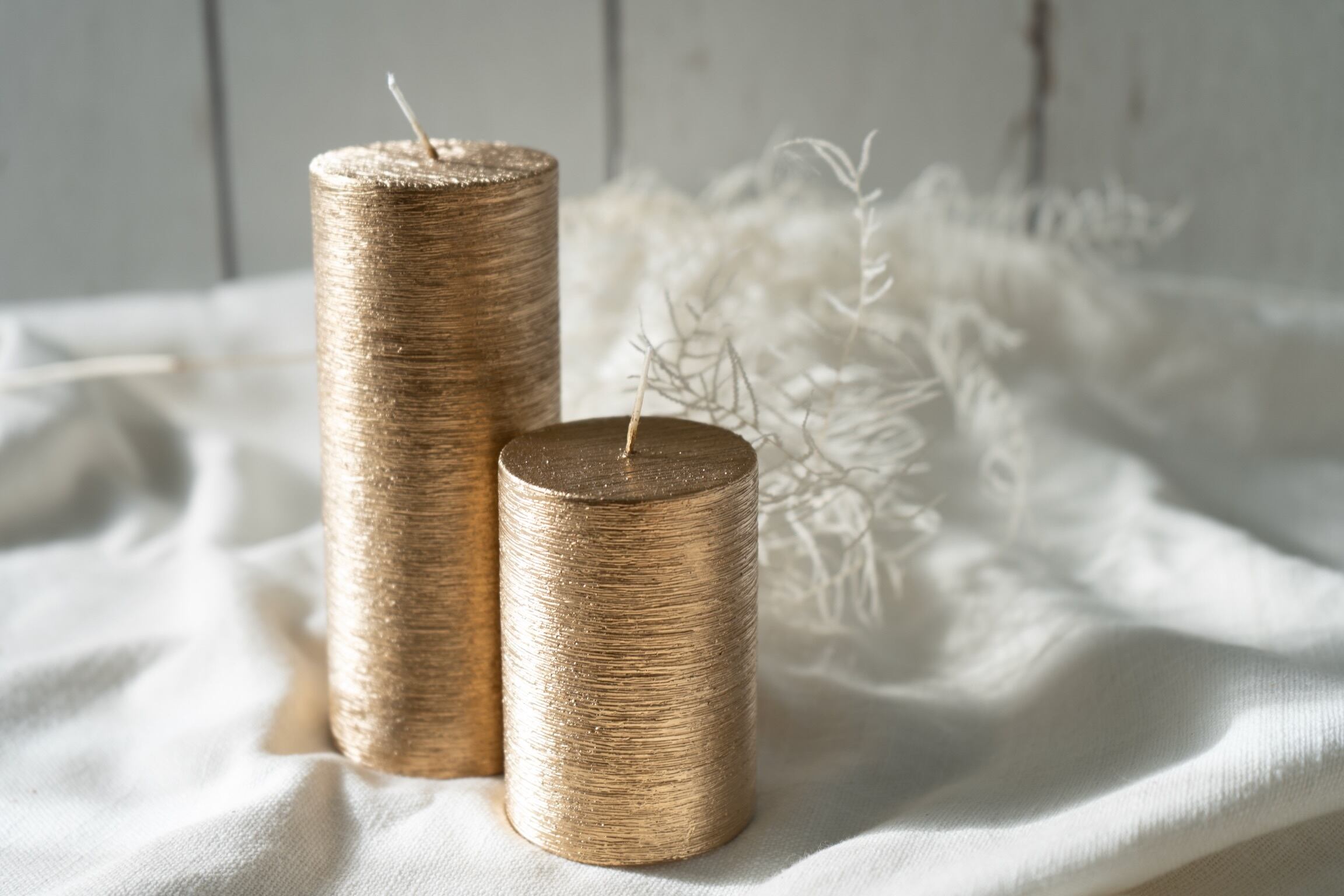 ブラッシュ仕上げのゴールドカラーキャンドル。