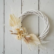 ドライフラワー、プリザーブドフラワーを使用したパームリーフメインのリースです。
