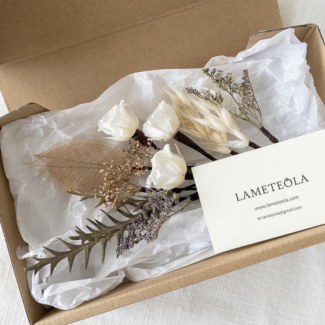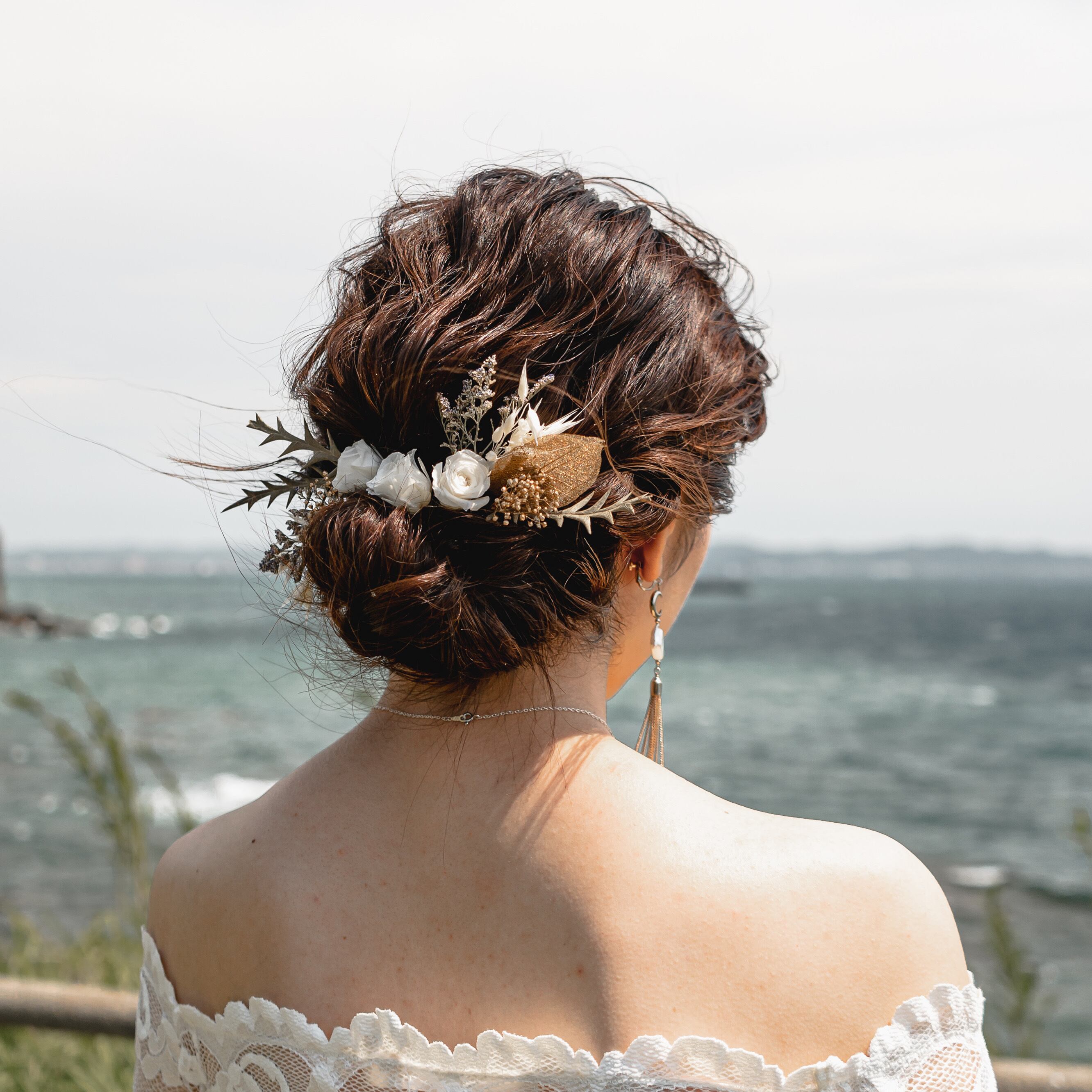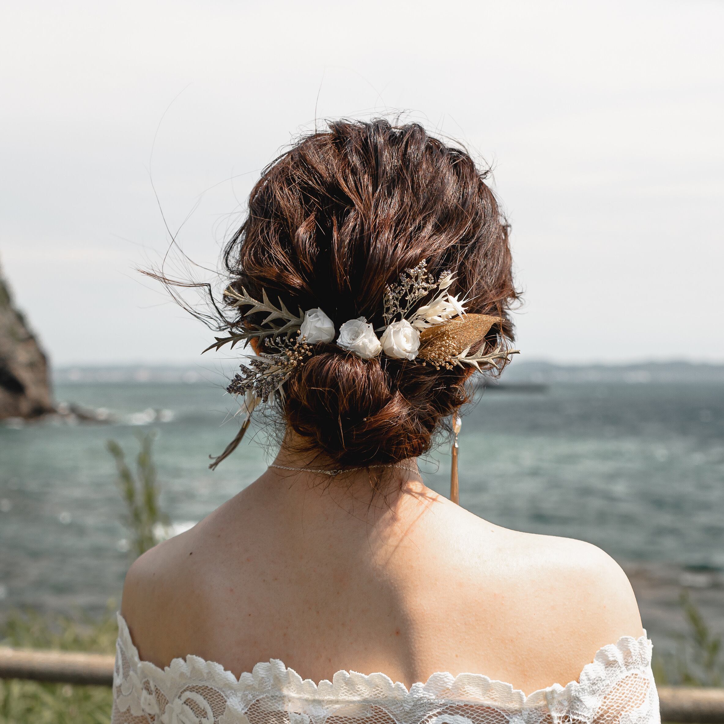 プリザーブドフラワー、ドライフラワーを使用したヘッドパーツ。