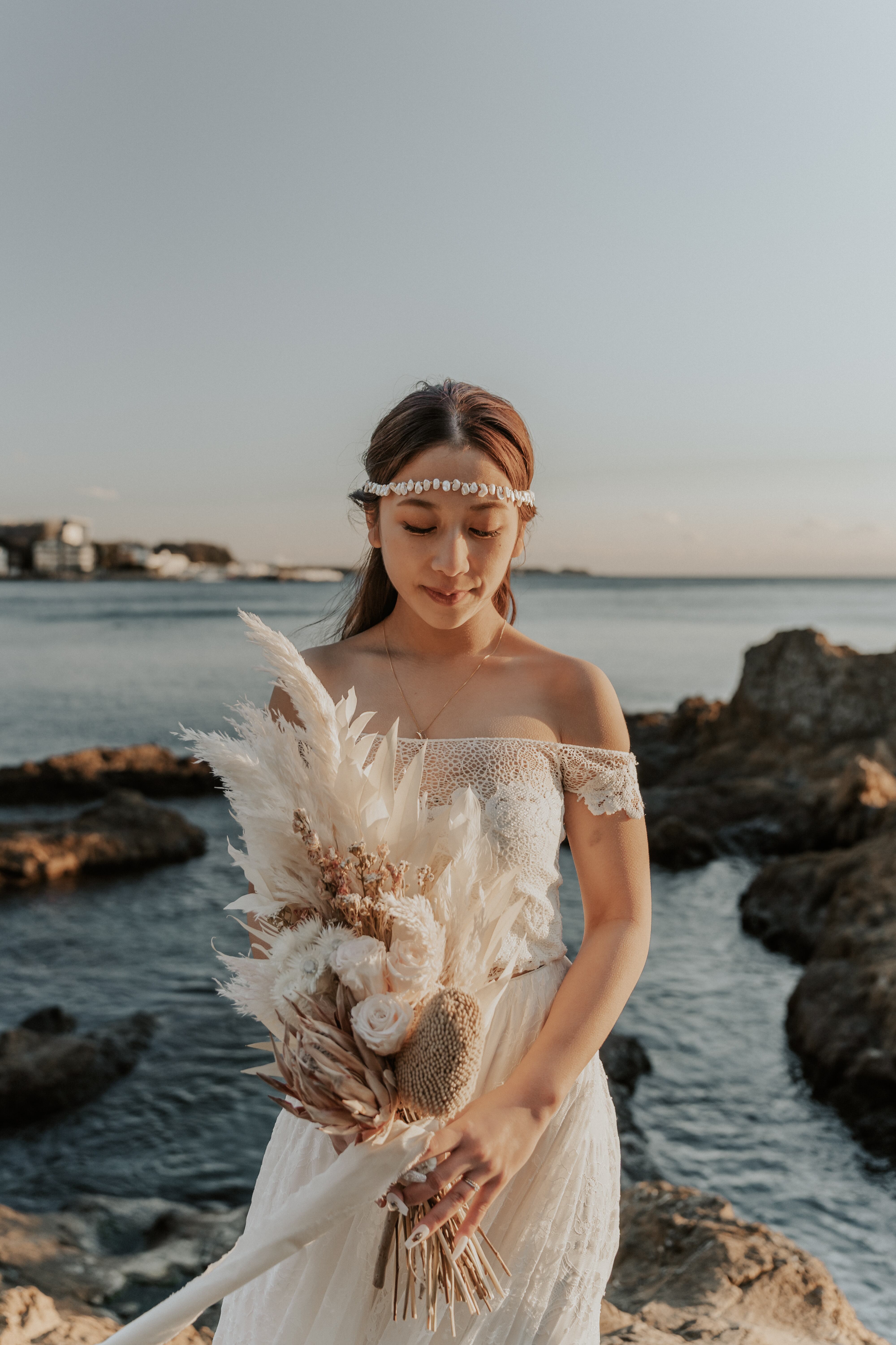ドライフラワー、プリザーブドフラワーを使用したウェディングブーケをお任せにて製作いたします。ブーケサイズ・カラーをご指定いただくだけでお気軽にご注文いただけます。